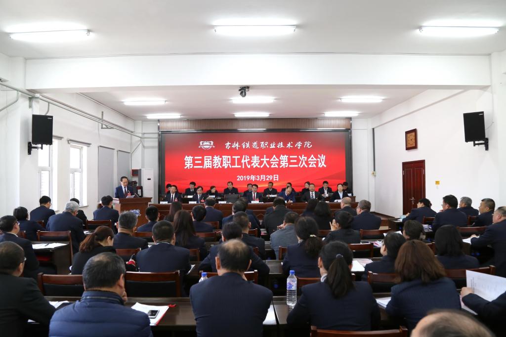 在全院上下深入学习贯彻习近平新时代中国特色社会主义思想和党的“十九大”精神,加快学院新一轮振兴,学院第三届教职工代表大会第三次会议于2019年3月29日胜利召开。学院党委领导班子出席会议,全院88名教职工代表参加了会议。大会预备会议由副院长李欣同志主持,第一次全体会议由党委副书记徐彤宝同志主持,第二次全体会议由副院长田雷同志主持。