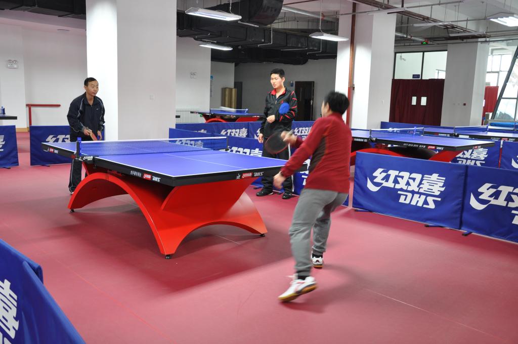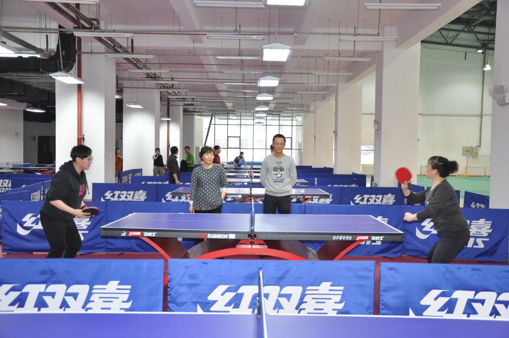 乒乓球运动在我院有着广泛的群众基础,是一项深受广大教职工喜爱的业余活动。举办教职工乒乓球赛,是学院重视提高广大教职工身体素质的体现。赛前,广大乒乓球爱好者纷纷踊跃报名,各分工会高度重视,积极组织赛前训练,认真备战。本次比赛分男团、女团,男单、女单四个项目。比赛于3月17日下午,在大学生活动中心的乒乓球馆的赛场内拉开战幕。参赛队员个个热情高涨,奋力拼搏。选手们虽不是专业运动员,但他们在赛场上挥洒汗水,挥洒激情,团结协作,奋勇拼搏,充分发挥了各自的潜能。进入循环阶段的比赛更是扣人心弦,精彩纷呈,对阵双方各施绝技,尽显神通,精湛娴熟的球技博得了现场观众们的阵阵喝彩。