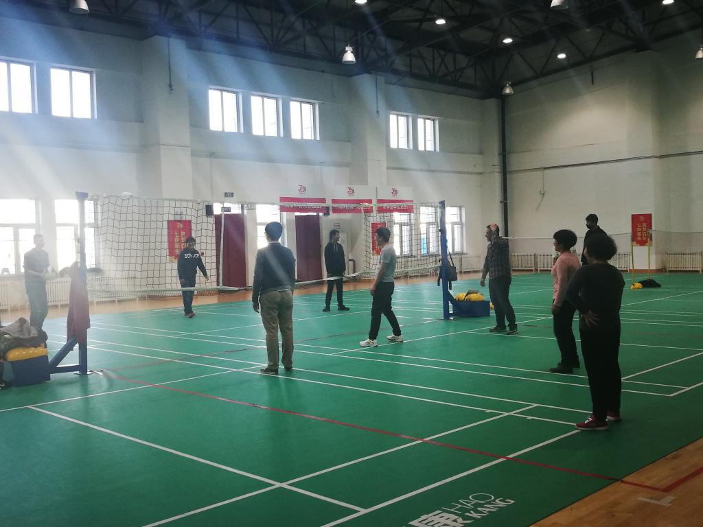 此次活动共分为两部分,首先进行的是发球比赛,分院教职工积极参与。