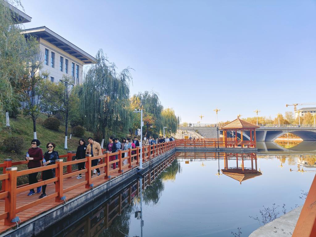 活动现场旗帜飘扬、气氛热烈,教职工们在教学楼门前集结,整装待发,随着领队号令发出,教职工们热情饱满、姿态昂扬,沿健身步道健步快行,伴随着悠扬的音乐,欣赏金秋校园美景,沿途打卡拍照,一路欢声笑语、气氛融洽,感受着健康运动带来的身心愉悦。