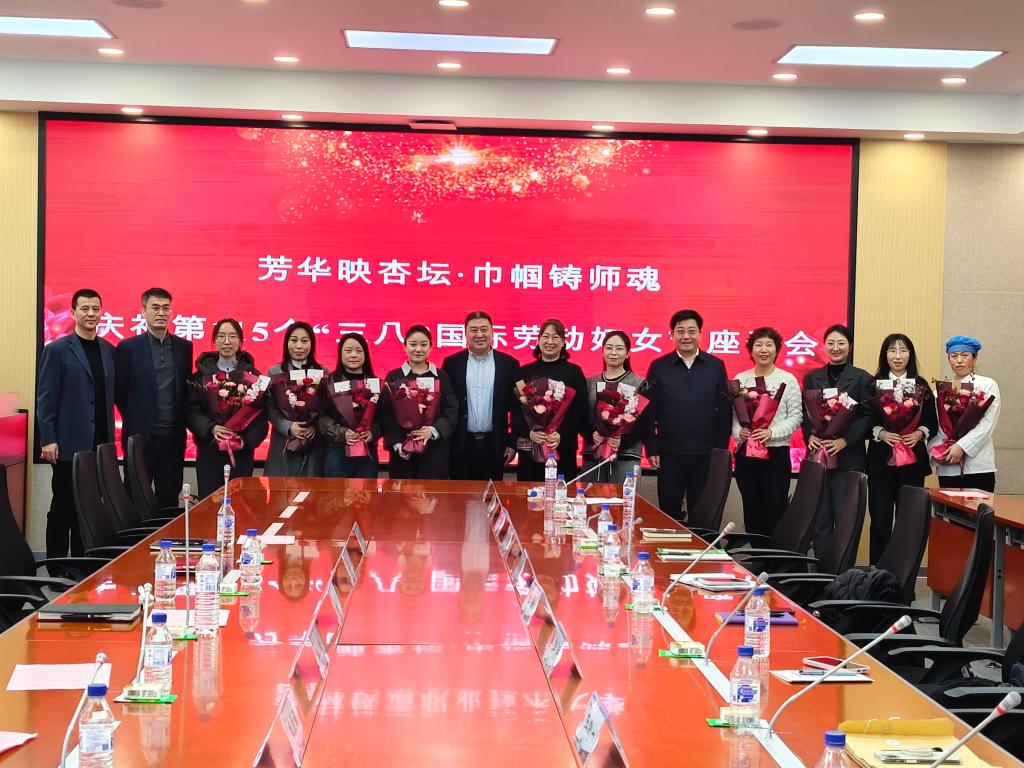 2025年3月8日上午,在第115个“三八”国际劳动妇女节来临之际,校工会举办“芳华映杏坛·巾帼铸师魂”女教职工代表座谈会。学校党委书记陈煜平,党委副书记苏建国,副校长李欣,副校长马卫强,副校长李原福与来自教学、管理、服务一线的10名女教职工代表齐聚一堂,共话女性力量与学校高质量发展。会议由校工会主席李惠娟主持。