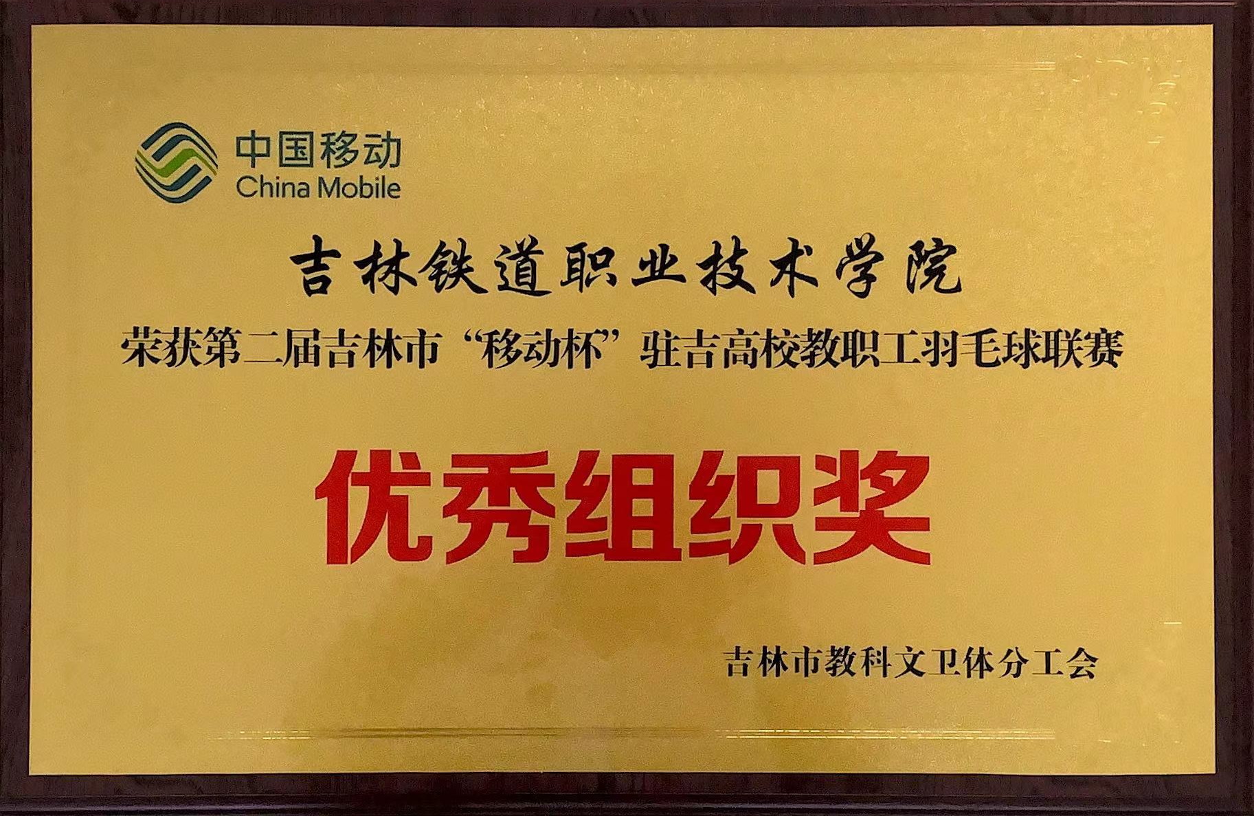 第二届吉林市“移动杯”驻吉高校教职工羽毛球联赛优秀组织奖