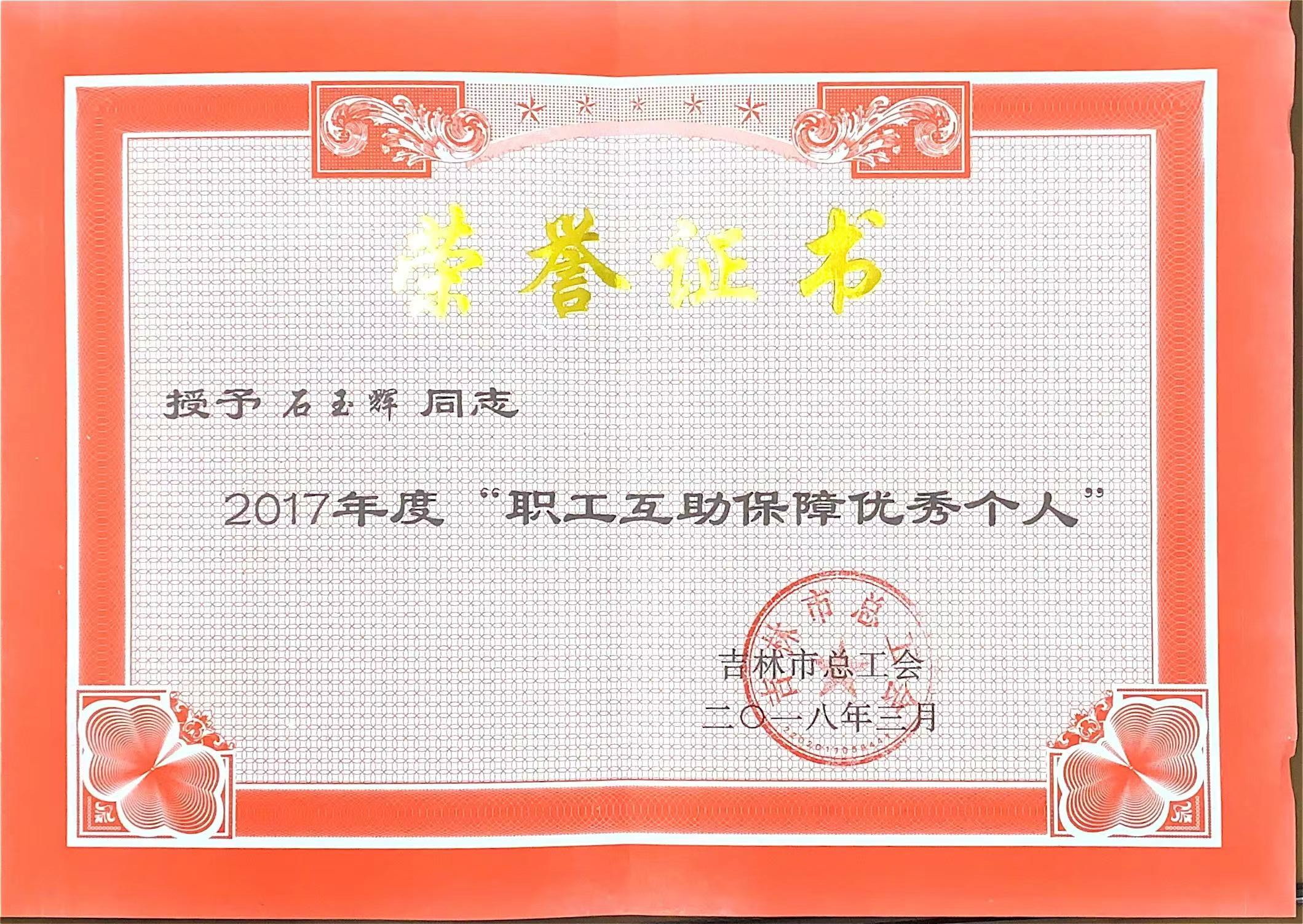 2017度年“职工互助保障优秀个人”